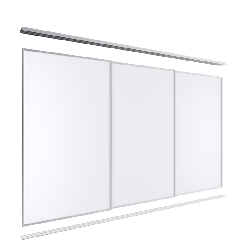 SO Lugna Sliding Door - 3 White Melamine Doors (White Triple Track) 0-2100H x 2701-3600W